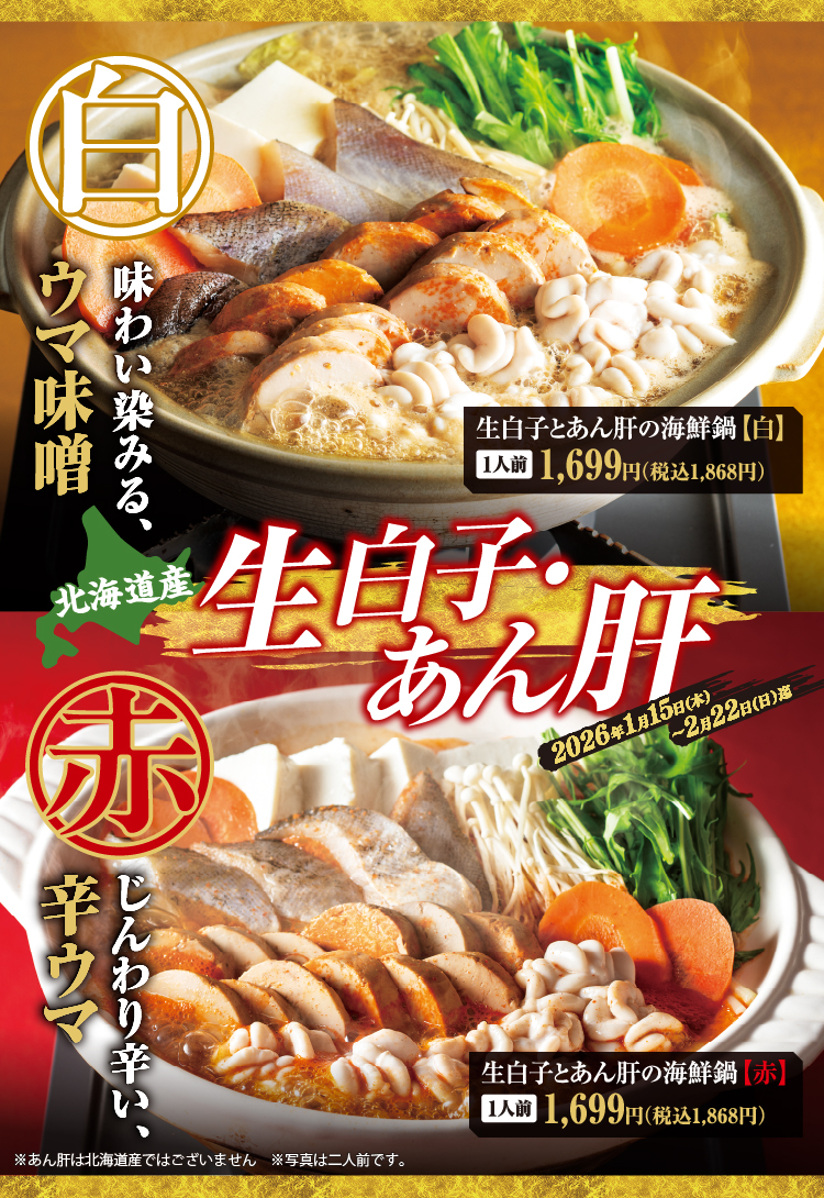 【利用条件】要予約/指定宴会コースご予約に限る/期間中の日~木曜は「飲み放題3hに延長」or「グランドメニュー掲載ドリンク全種飲み放題」の特典が無料/祝日・祝前日利用不可(1/11・1/12・2/10・2/11・2/22・2/23)/他券サービス・併用不可